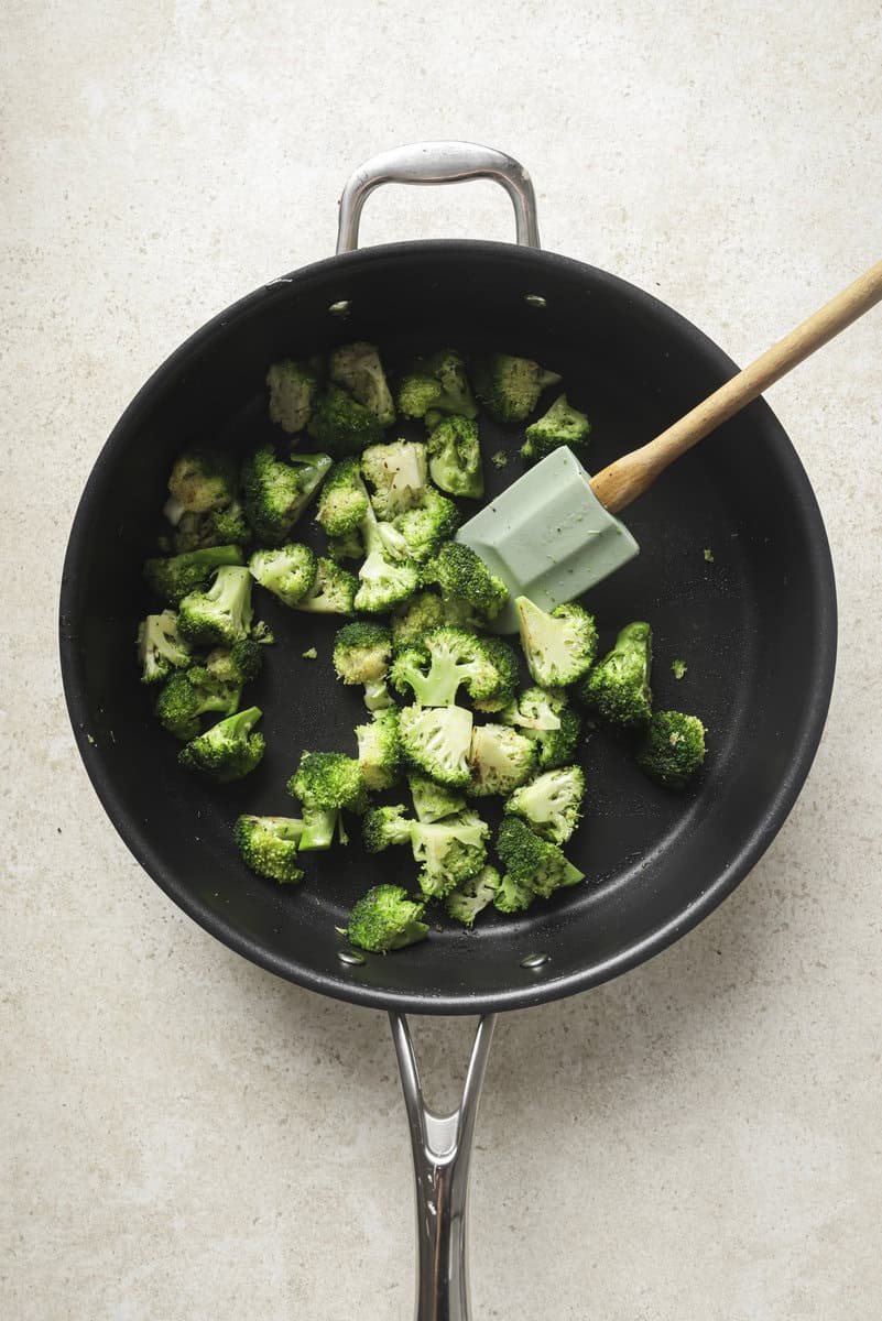 - Step 3: Heat oil in a large non-stick pan over medium heat. Cook the broccoli for about 3 minutes until tender.