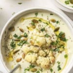 Nothing beats a creamy, silky roasted cauliflower soup in the fall. If you've got a head of cauliflower staring at you from the fridge, this is your sign to make this luscious soup!