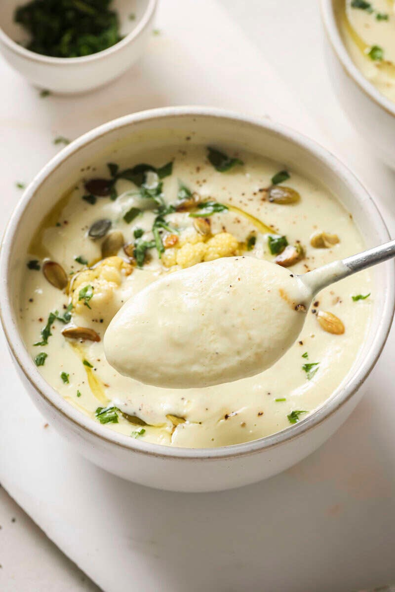 For extra flavor, roast the cauliflower until deeply golden; those caramelized edges add incredible depth to the soup.